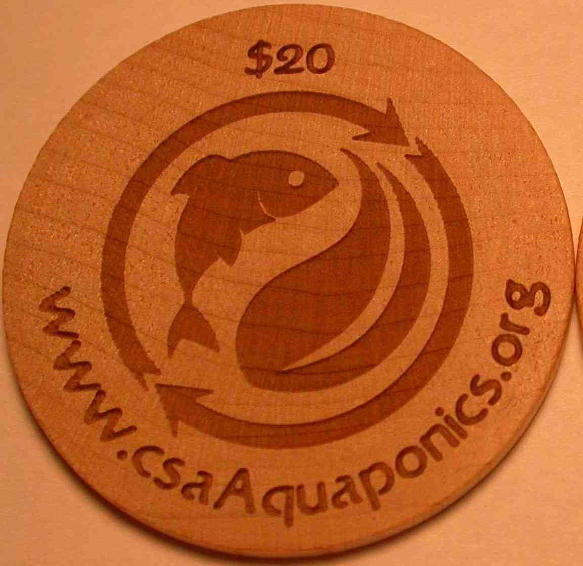 CSA Aquaponics (CSAA) is offering a limited number of Founders’ Tokens (beautiful hardwood maple), available in $20, $50 and $100 denominations. Each coin is redeemable during the growing season for fresh, organic fish and greens from our farm in Santa Cruz, CA.